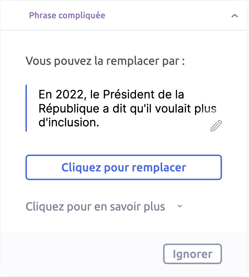 U31 propose automatiquement des synonymes plus compréhensibles, ou des définitions simples pour être sûr d'être compris par tous.
